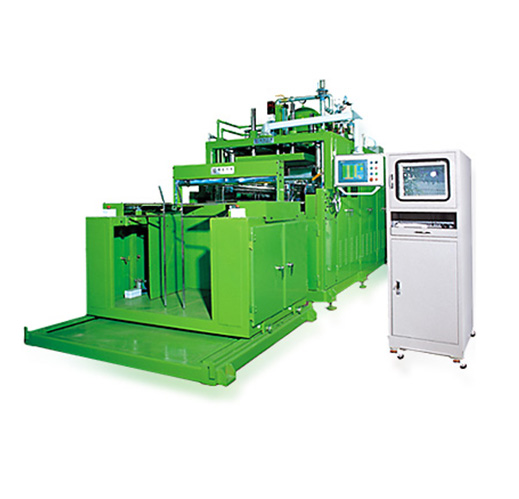롤식의 원단을 이송장치 및 가열 장치를 장착하여 진공의 힘으로 성형하는 기계입니다.